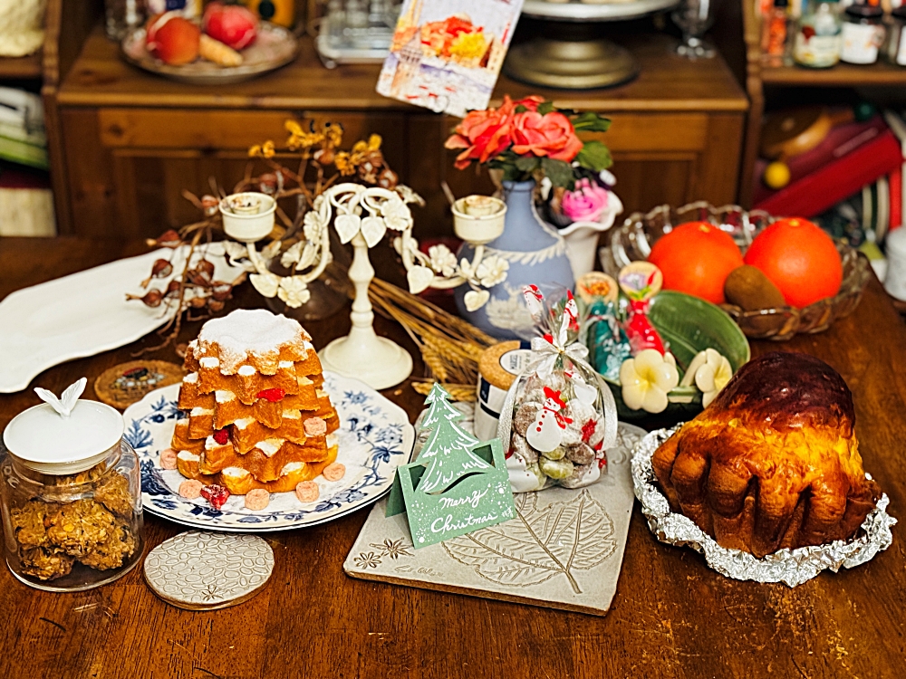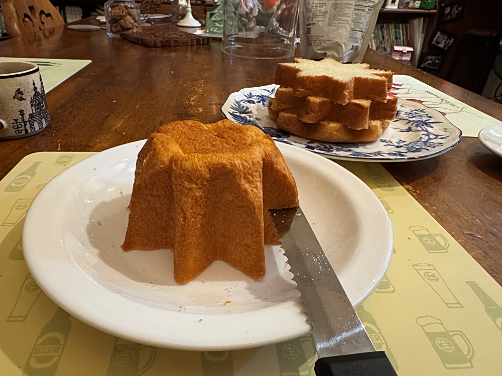 我喜歡過節,最美好的過節方式就是與親愛的家人一起享用節慶美食慶祝。冷涼的冬天來臨總會讓我油然升起幸福的感覺,一進入十二月,買幾盆聖誕紅妝點在客廳一隅、點起「星星燈串酒瓶」、早餐的豆漿裝在聖誕馬克杯裡,然後在聖誕節前幾天開始準備應景糕點,今年一開始想了好幾個方案,最後從簡只打一大份潘多洛麵糰,除了經典的八角潘多洛,另外再烤成一個超大僧侶頭布里歐修,除了妝點在聖誕早餐桌上,也與好同事分享歡度佳節。2025即將進入尾聲,祈求2026平安幸福,守住我們的自由民主,一切順遂。